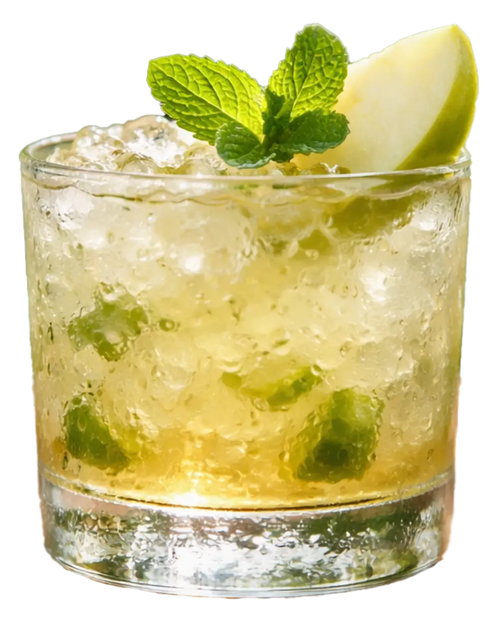 Un cocktail fresh, răcoritor și echilibrat, cu note acrișoare de măr verde, prospețime de mentă și o bază clasică de whisky. Este o variantă reinterpretată a stilului “smash”, foarte popular și testat în baruri.