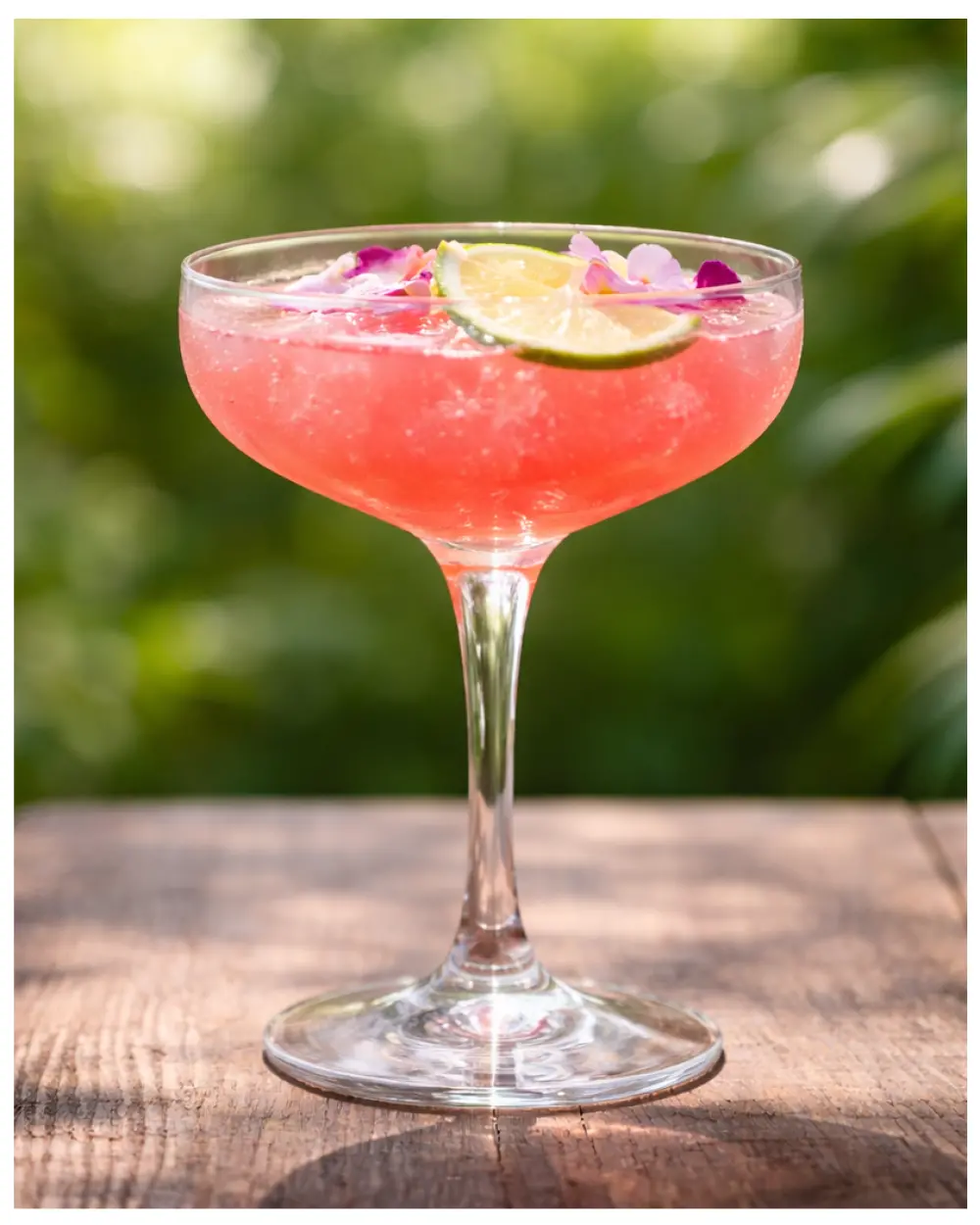 O băutură fină, fructată și elegantă, cu note proaspete de pepene roșu și citrice, servită într-un pahar cu picior pentru un aspect sofisticat. Este potrivită pentru evenimente, cine speciale sau un meniu de vară cu prezentare premium.